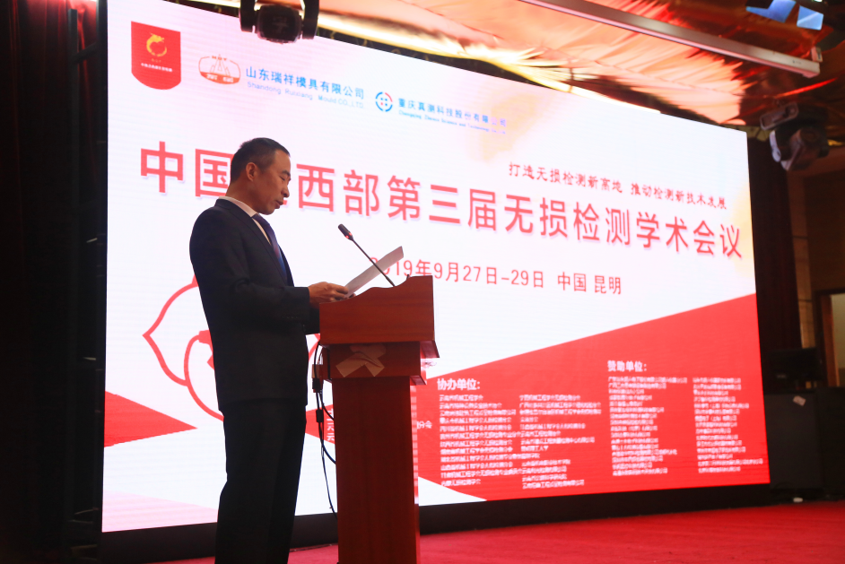 在金橘满枝、硕果累累的金秋时节,举国上下喜迎建国70周年之际,由云南省机械工程学会无损检测分会、云南省建筑科学研究院、云南尚法建筑工程质量检测有限公司三家单位共同主办,中国泛西部第三届无损检测学术会议于2019年9月27日至30日在云南昆明中国兵器工业疗养院隆重召开。会议由来自云南、重庆、贵州、四川、陕西、湖南、湖北、江西、山西、甘肃、内蒙、宁夏、广西、新疆 、北京、广东、辽宁等(省、市、自治区)的代表参加,参会人员首次超过300人。会议紧紧围绕“打造无损检测新高地,推动检测新技术发展”的会议主题,进行了13个特邀报告和专题报告学术交流,收到会议论文120篇。此次会议得到了全国的无损检测设备生产、销售、代理商共33家厂商的鼎力支持。中国机械工程学会无损检测分会秘书长季敬元先生、云南省机械工程学会秘书处栾玉琴女士到会表示祝贺。云南省机械工程学会无损检测分会理事长鲍宗川主持会议开幕式,重庆无损检测学会理事长王珏主持闭幕式。