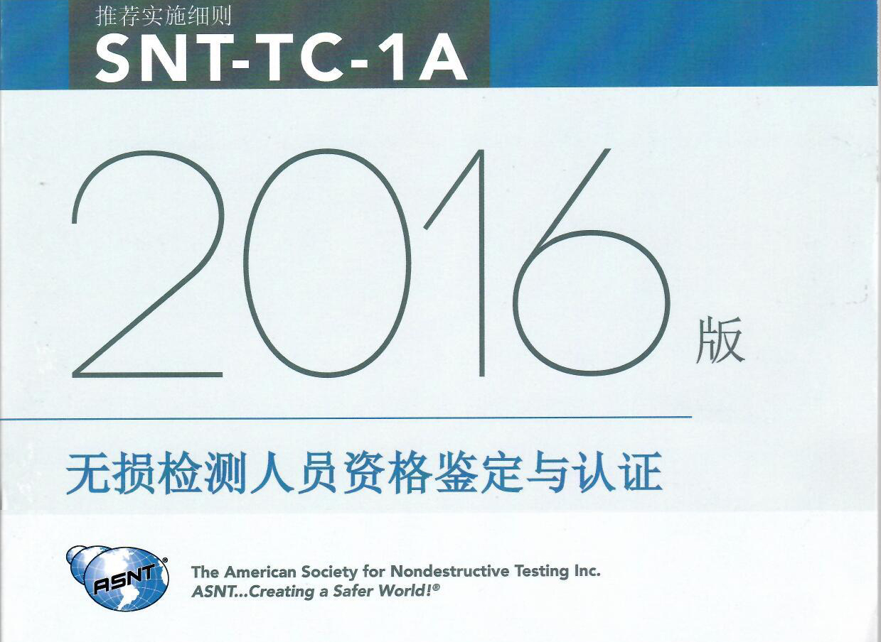 《SNT-TC-1A-2016无损检测人员资格鉴定与认证》中文版正式出版!附购买方法