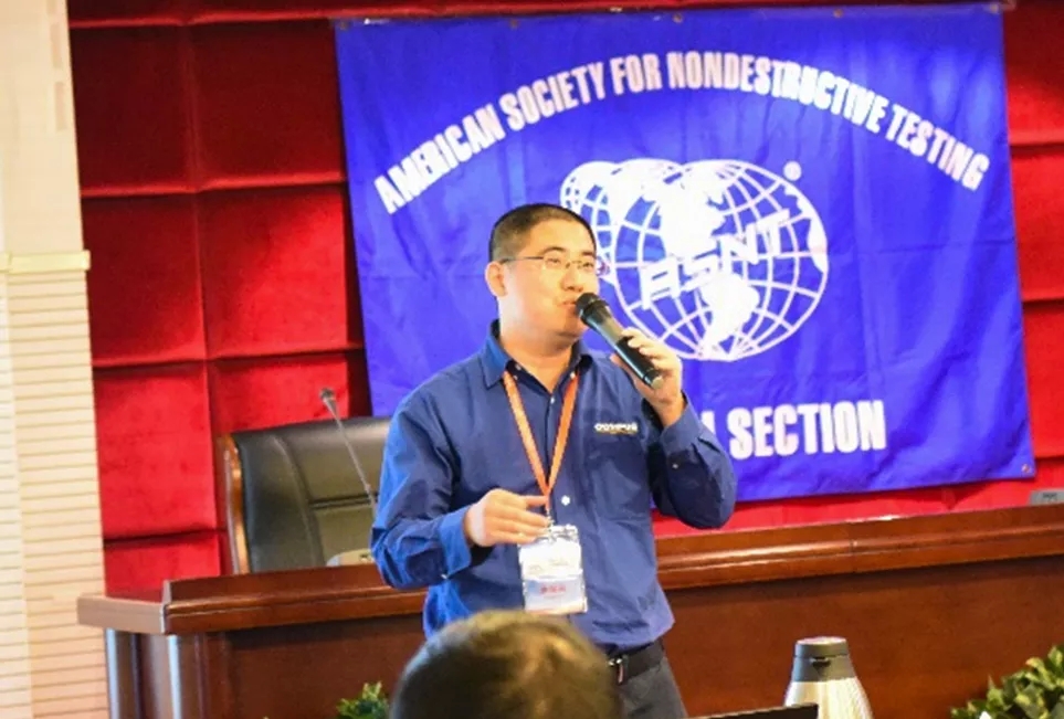 闭幕式后继续第四部分超声检测报告专场,由ASNT上海分部项目活动副主任吴骏先生主持,挪威船级社(中国)有限公司胡文杰高级工程师作报告“不锈钢焊缝爬波检测能力探讨”,苏州市莫森机电有限公司莫苏恩高级工程师作报告“合成孔径超声聚焦技术的应用”,GE公司钟德煌技术经理作报告“相控阵探伤的数字化趋势”。